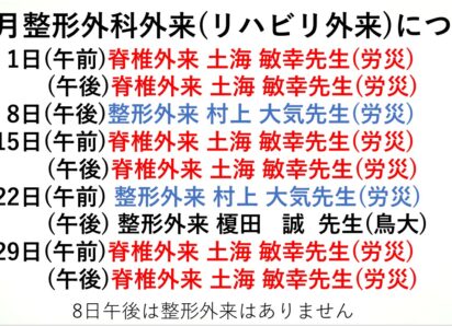 6月の整形外科外来予定です 7日は午前午後とも整形外科外来はありません よろしく... 続きを読む