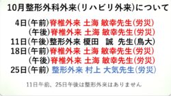 10月の整形外科外来予定です