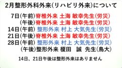 2月の整形外科外来予定について
